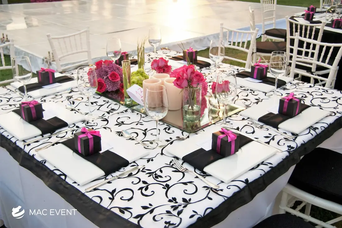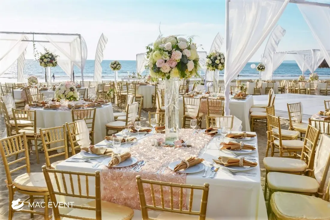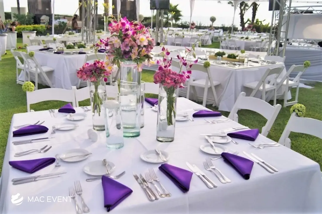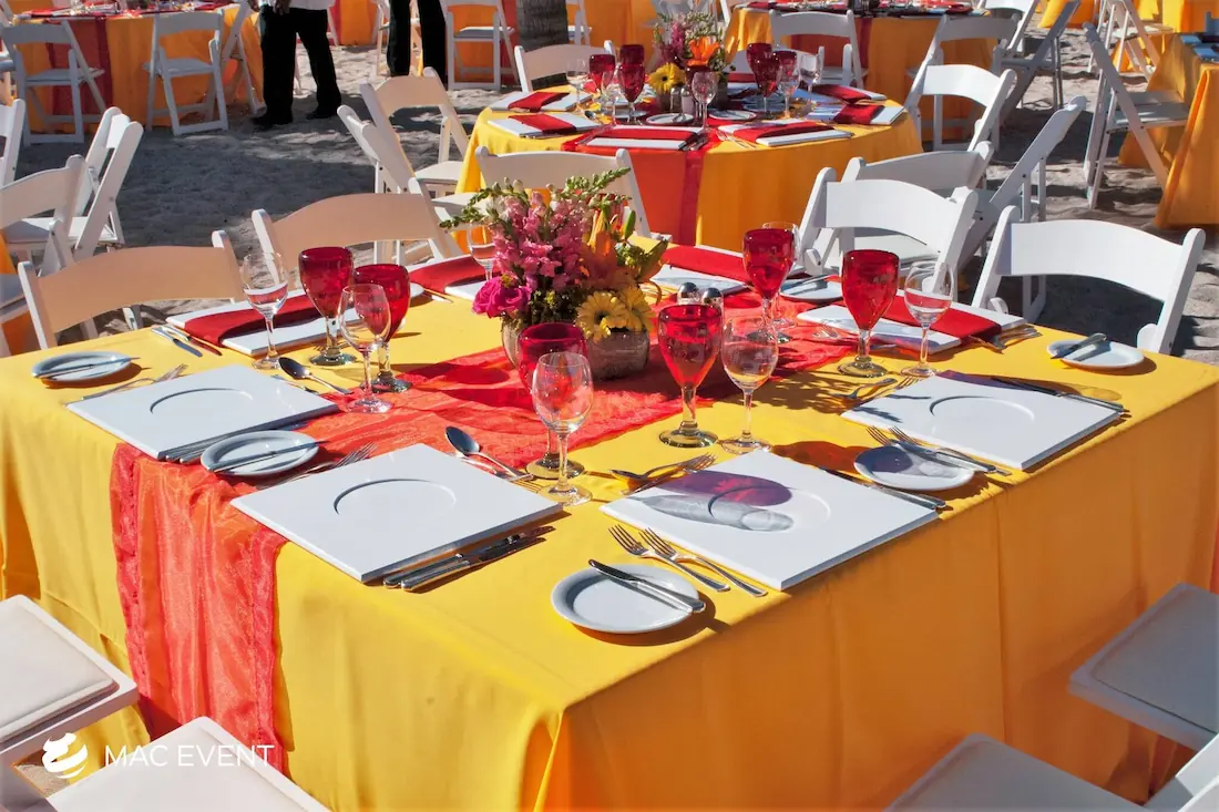 Renta de mesas cuadradas en Puerto Vallarta, Sayulita y Punta Mita para bodas y eventos. Perfectas para eventos modernos y sofisticados. ¡Dale un toque de elegancia a tu celebración con nuestras mesas cuadradas!