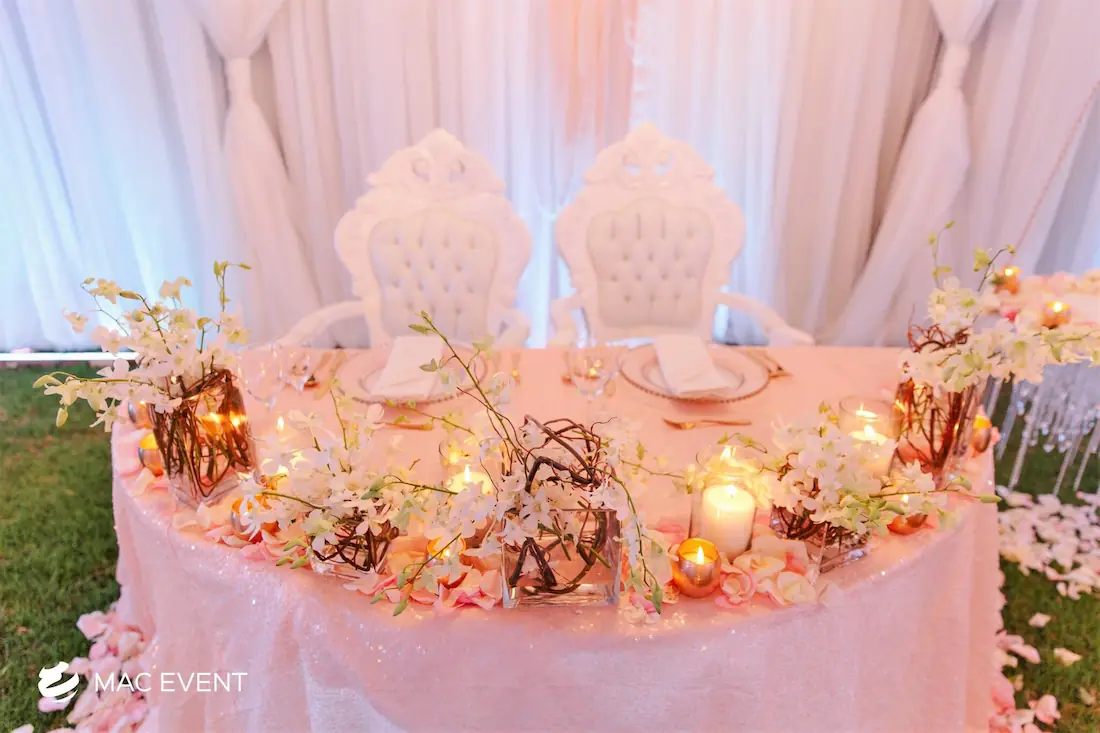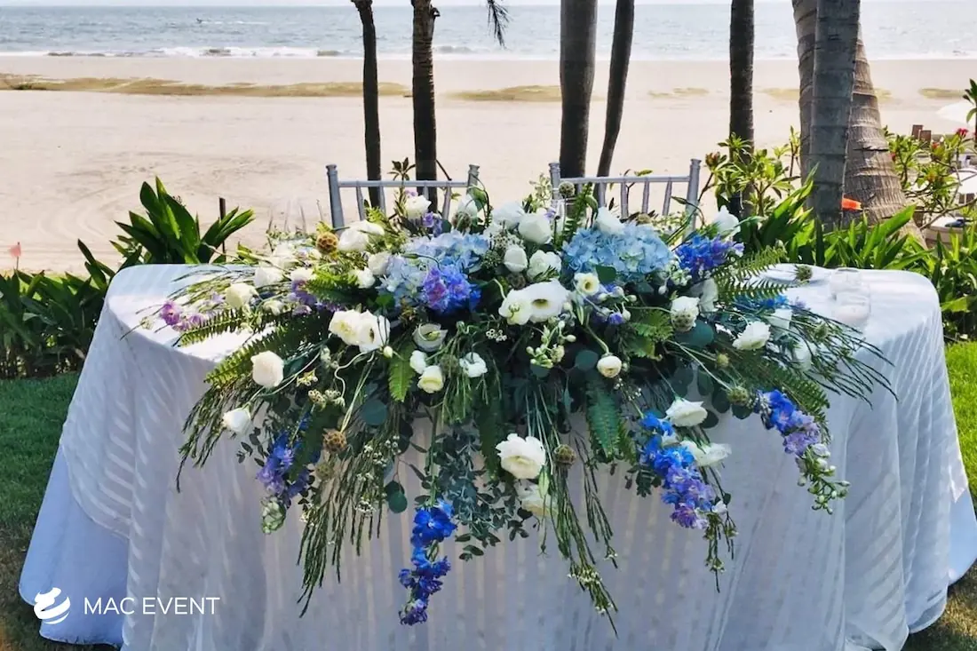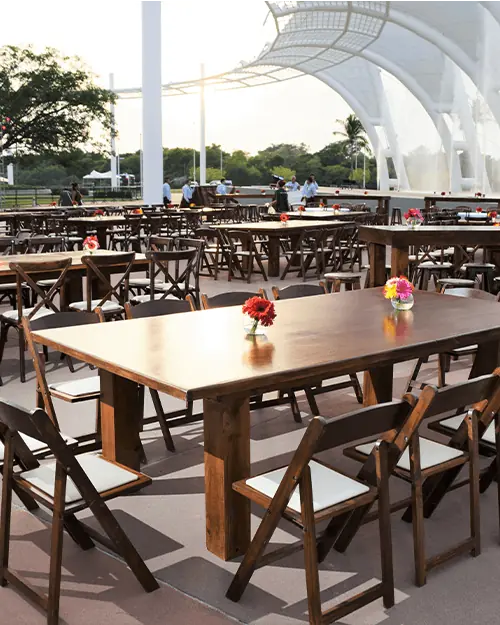 Renta de mesas media luna en Puerto Vallarta, Sayulita y Punta Mita para bodas y eventos. Ideales para crear espacios únicos y originales. ¡Dale un toque creativo a tu celebración con nuestras mesas media luna!