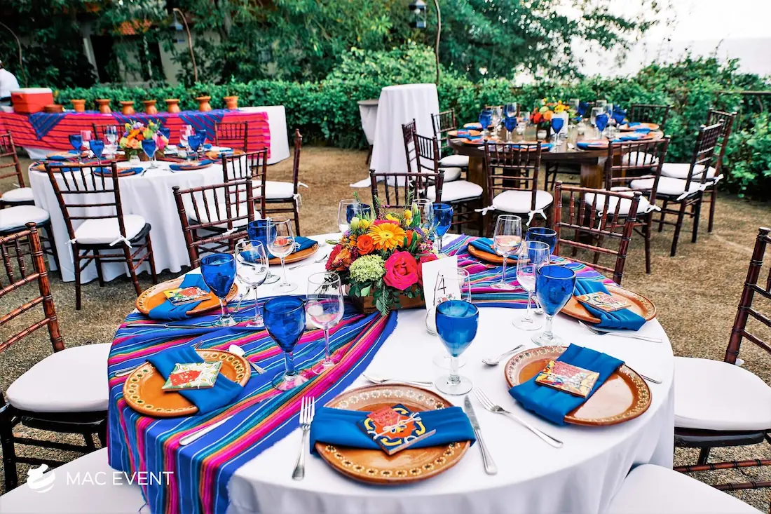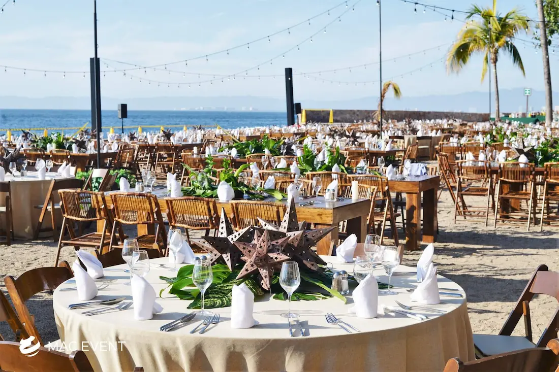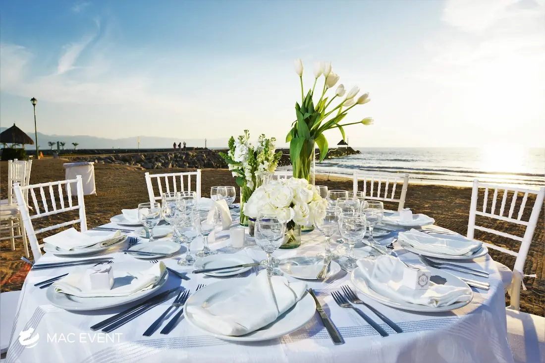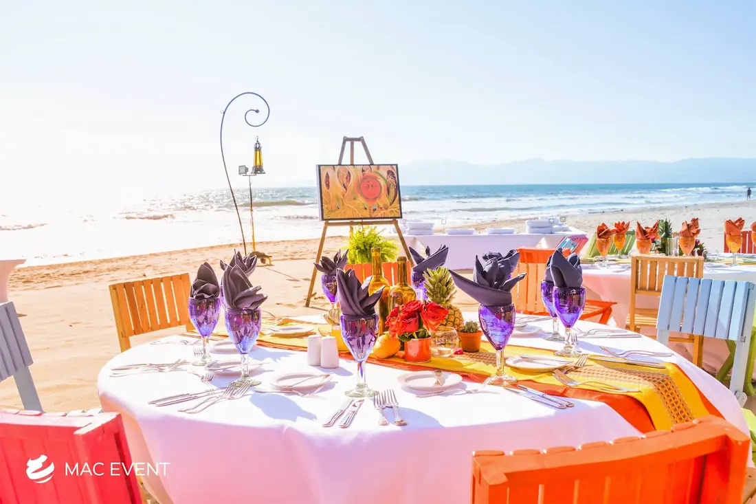 Renta de mesas redondas en Puerto Vallarta, Sayulita y Punta Mita para bodas y eventos. Ideales para reuniones íntimas y acogedoras. ¡Crea un ambiente cálido y elegante con nuestras mesas redondas!
