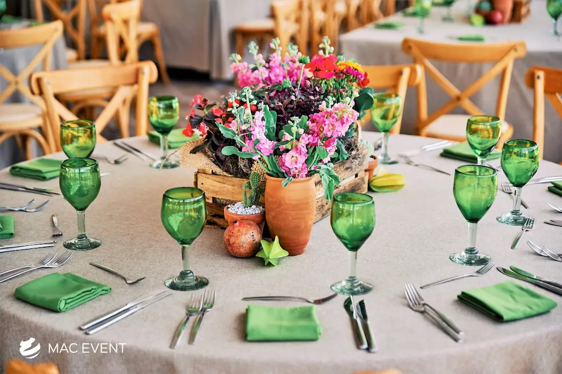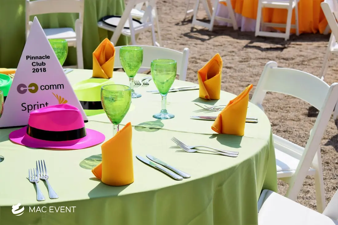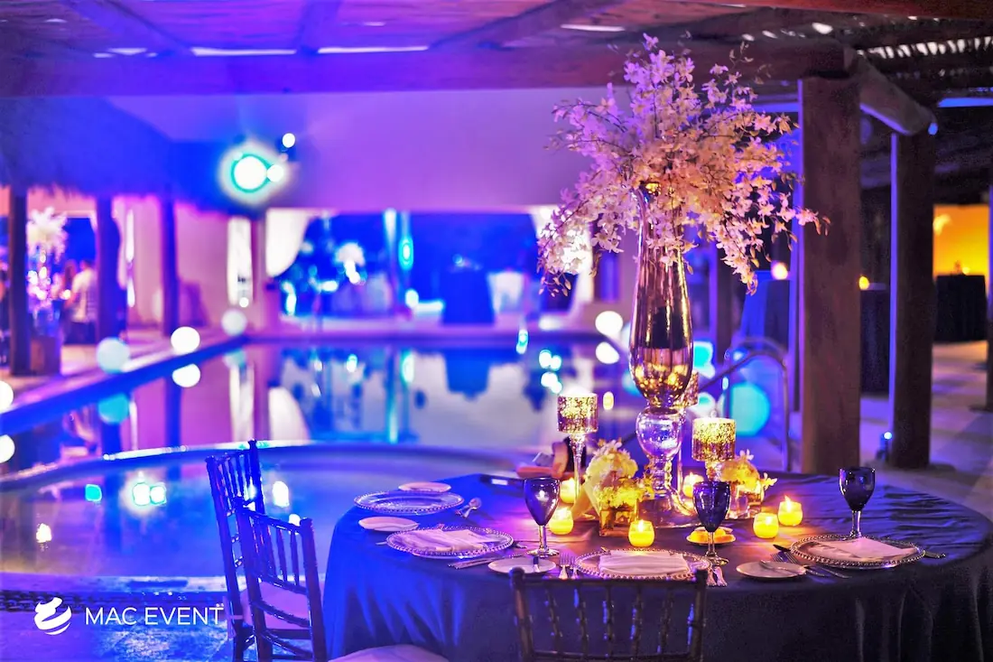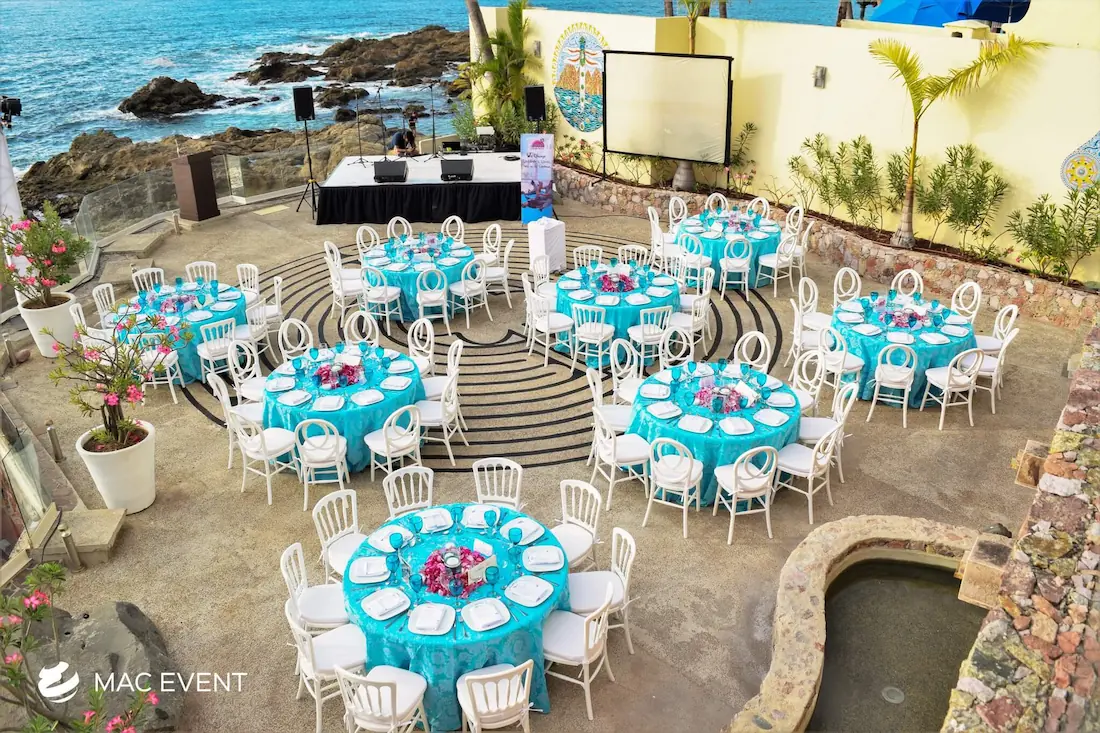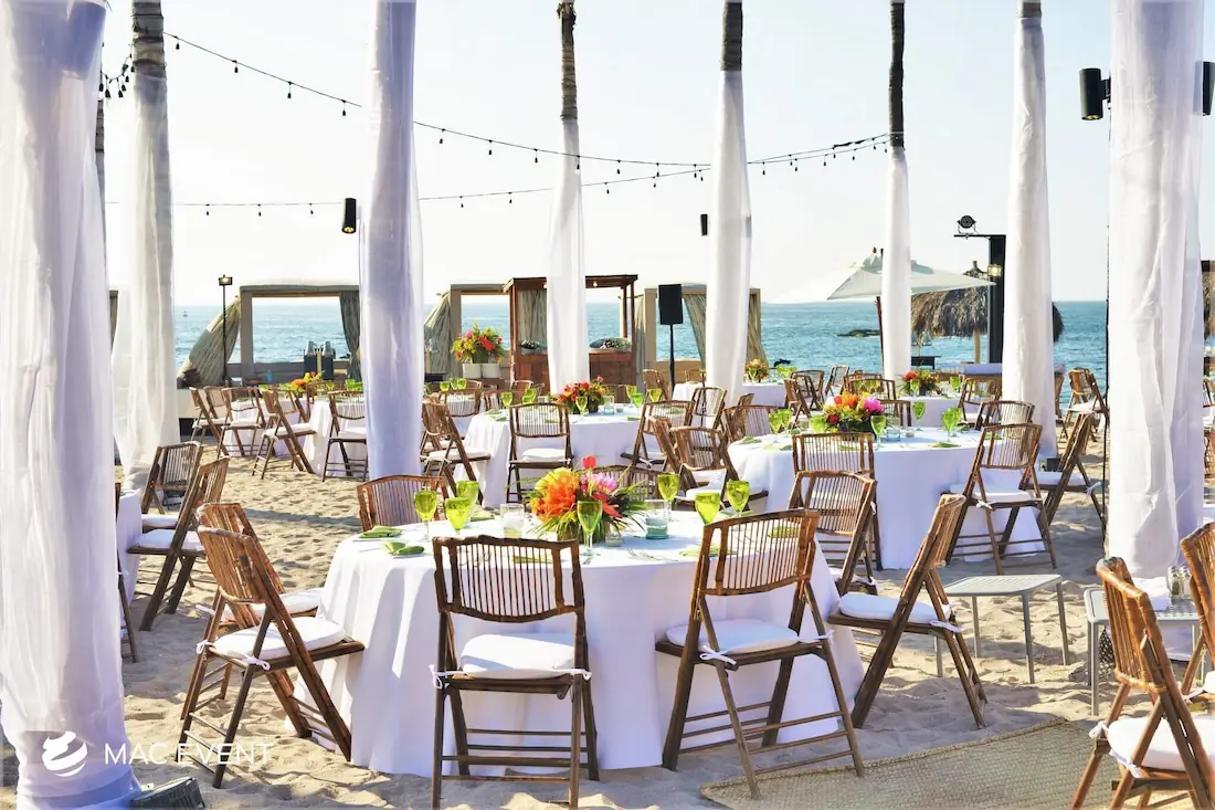 Renta de mesas redondas en Puerto Vallarta, Sayulita y Punta Mita para bodas y eventos. Ideales para reuniones íntimas y acogedoras. ¡Crea un ambiente cálido y elegante con nuestras mesas redondas!
