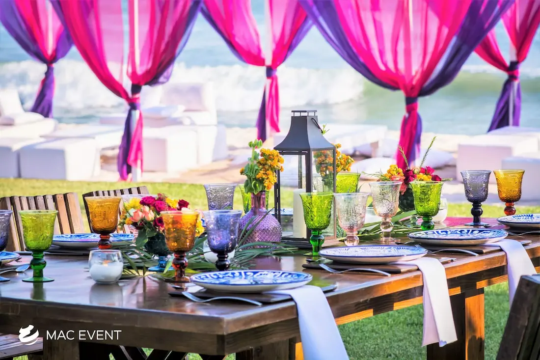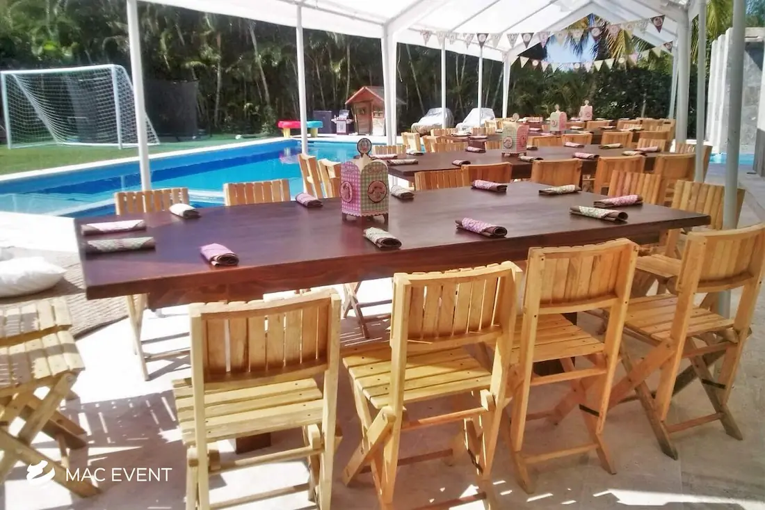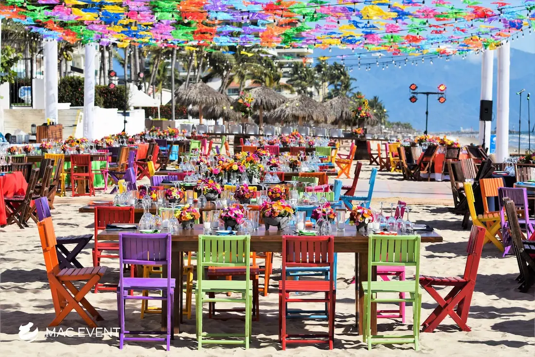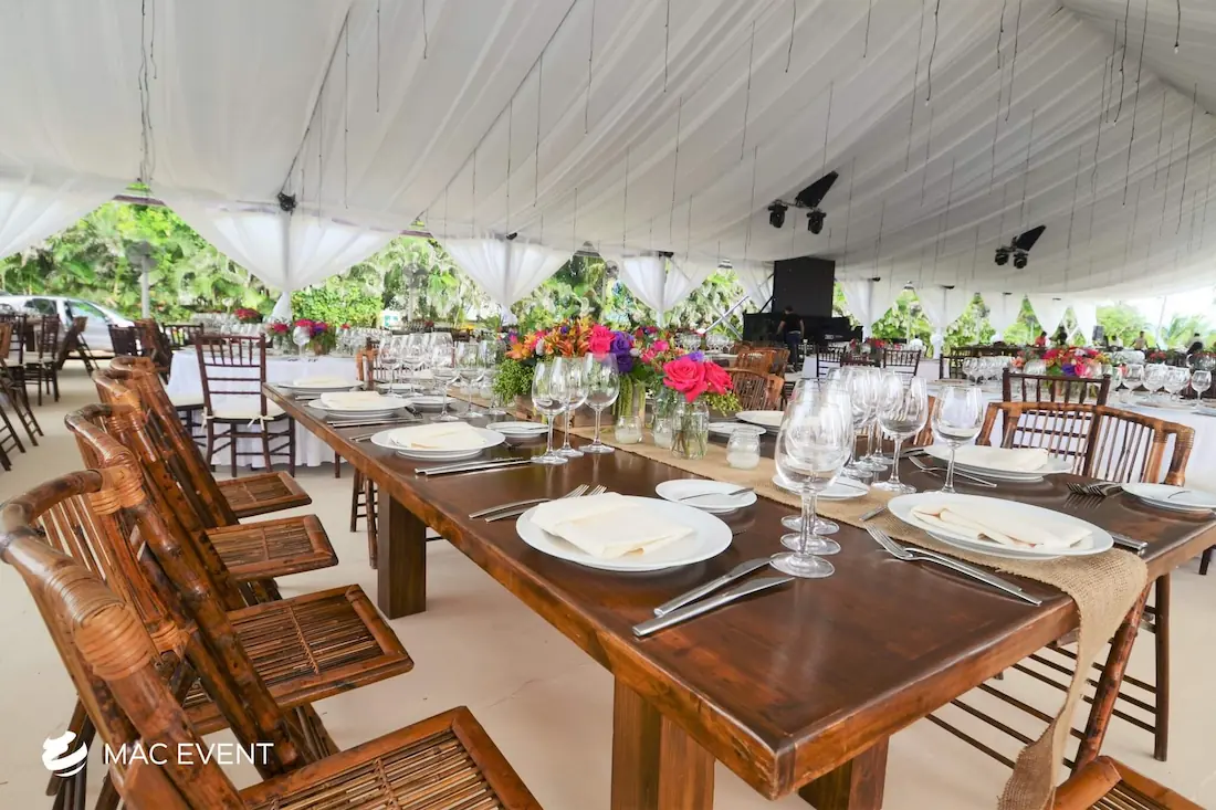 Renta de mesas rústicas rectangulares en Puerto Vallarta, Sayulita y Punta Mita para bodas y eventos. Perfectas para eventos con estilo campestre. ¡Haz de tu celebración algo especial con nuestras mesas rústicas!