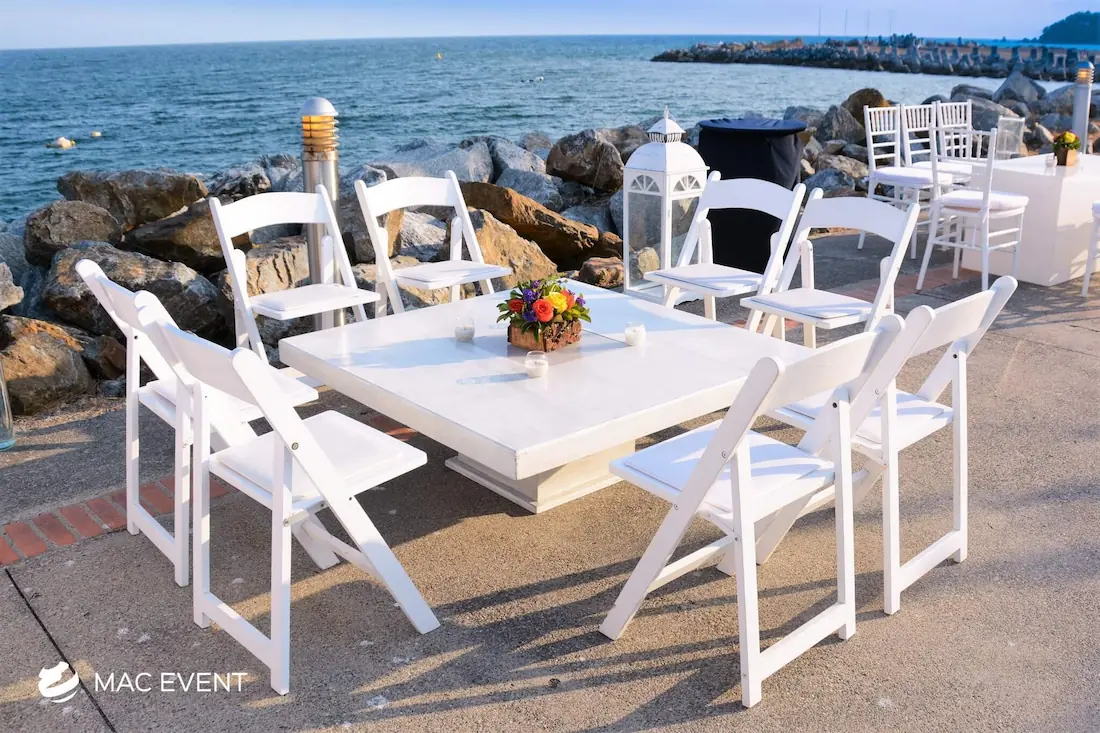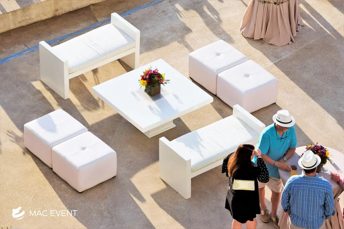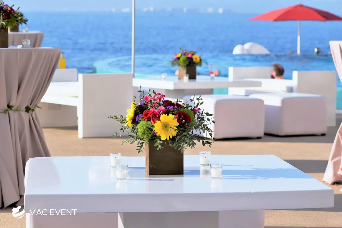 Renta de mesas de centro de madera y acrílico en Puerto Vallarta, Sayulita y Punta Mita para bodas y eventos. Combinan estilo moderno y clásico. ¡Sorprende a tus invitados con un toque de distinción!
