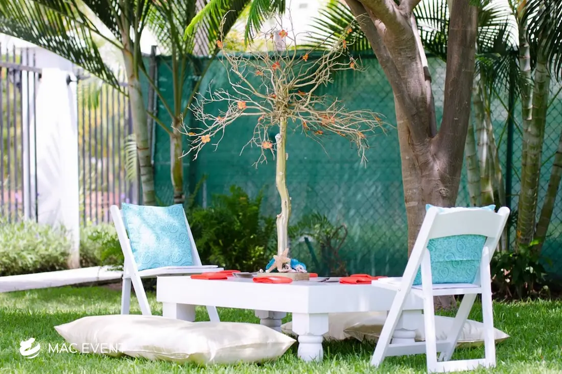 Renta de mesas de centro con patas torneadas en Puerto Vallarta, Sayulita y Punta Mita para bodas y eventos. Añaden un toque clásico y elegante a cualquier espacio. ¡Haz de tu evento algo especial!