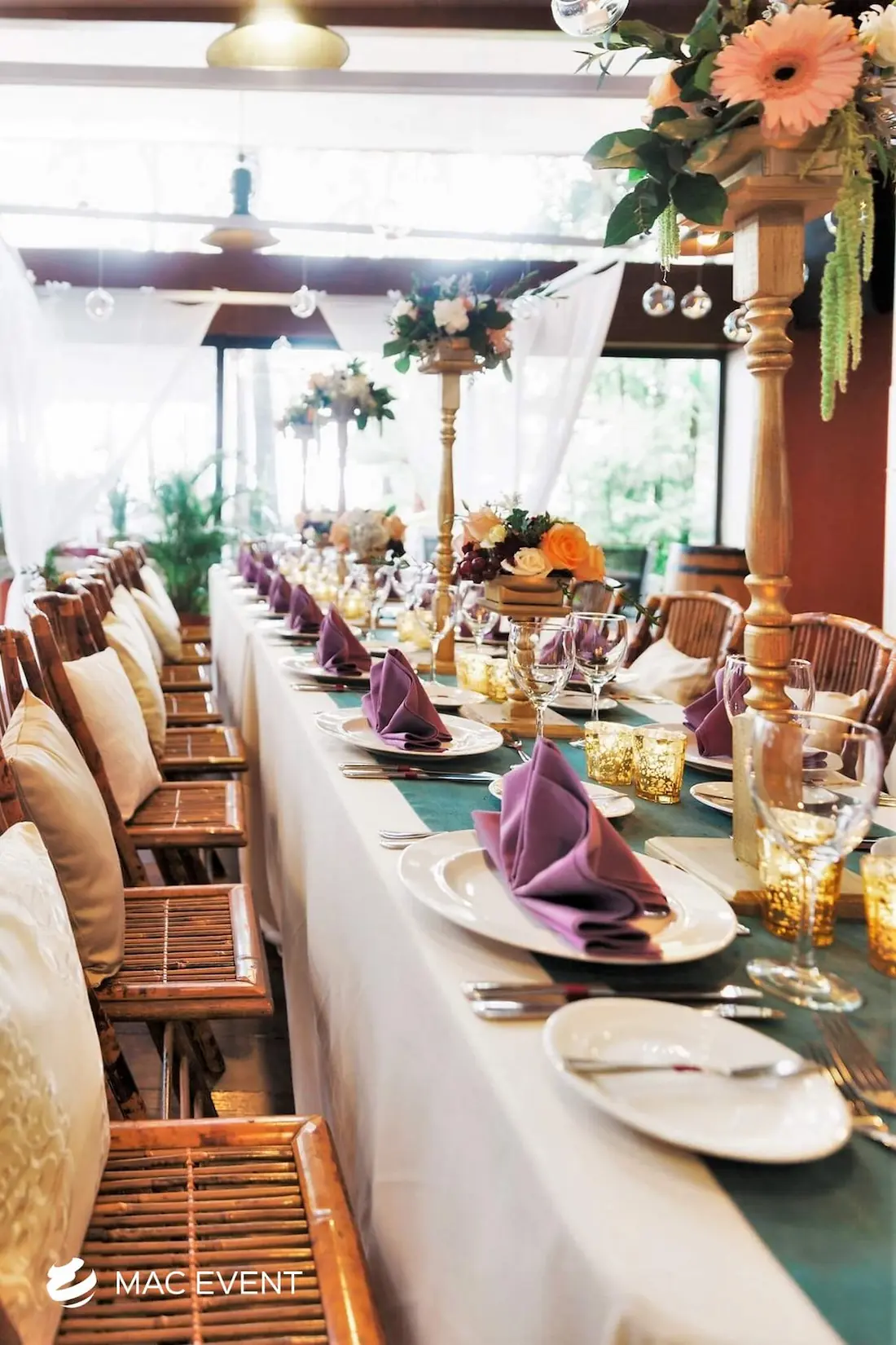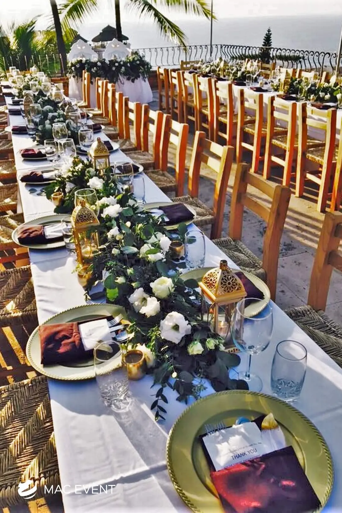 Renta de mesas tablón clásicas en Puerto Vallarta, Sayulita y Punta Mita para bodas y eventos. Perfectas para cualquier estilo de evento. ¡Haz de tu celebración un éxito con nuestras mesas tablón!