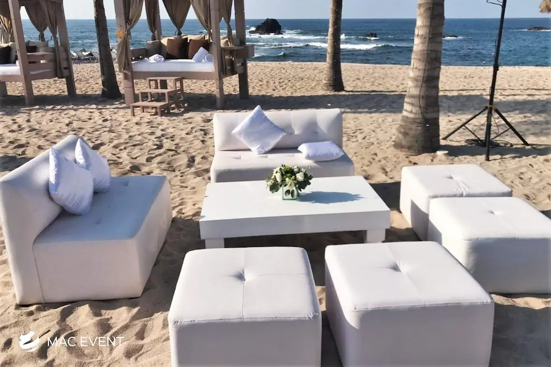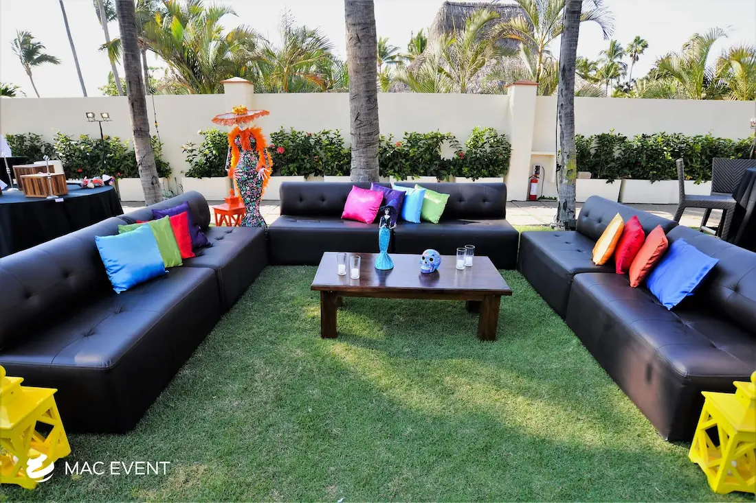 Renta de salas lounge clásicas en Puerto Vallarta, Sayulita y Punta Mita para bodas y eventos. Perfectas para cualquier ocasión, añaden elegancia y confort. ¡Crea un ambiente acogedor y elegante!