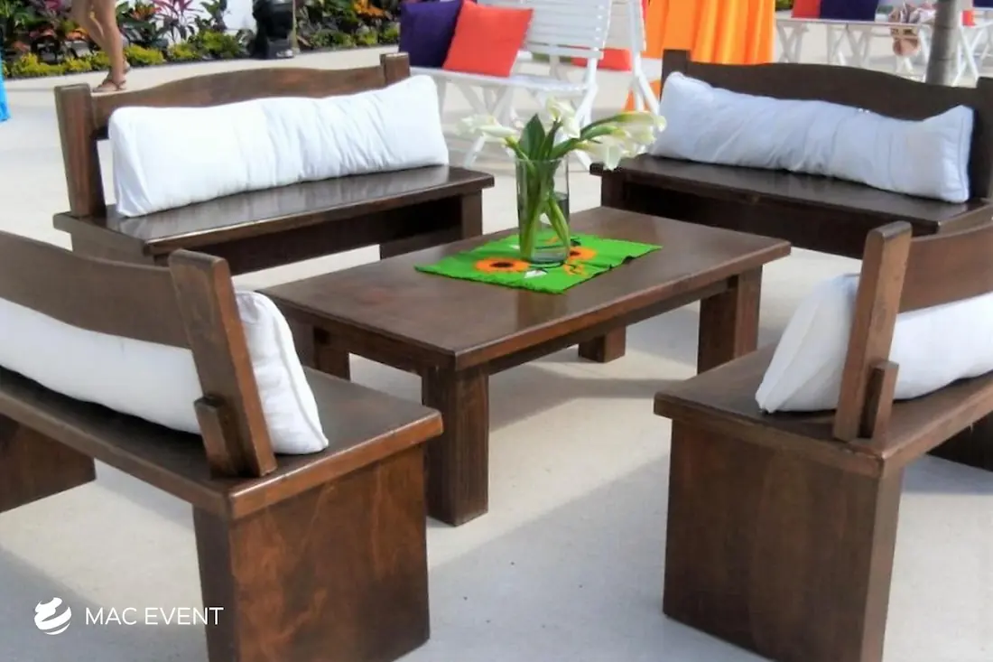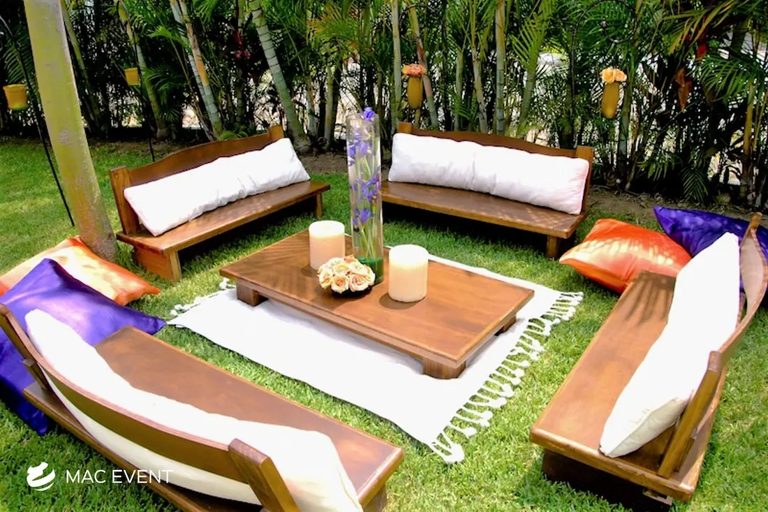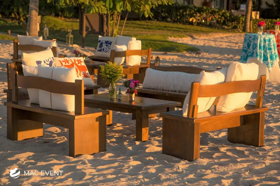 Renta de salas lounge rústicas en Puerto Vallarta, Sayulita y Punta Mita para bodas y eventos. Ideales para eventos con temática campestre. ¡Haz de tu celebración algo especial con nuestras salas lounge rústicas!