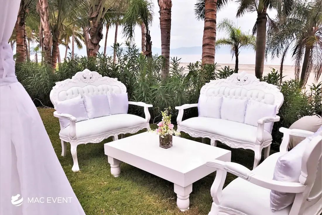 Renta de salas lounge victorianas en Puerto Vallarta, Sayulita y Punta Mita para bodas y eventos. Combinan estilo clásico y elegancia. ¡Haz de tu evento algo inolvidable con nuestras salas lounge victorianas!