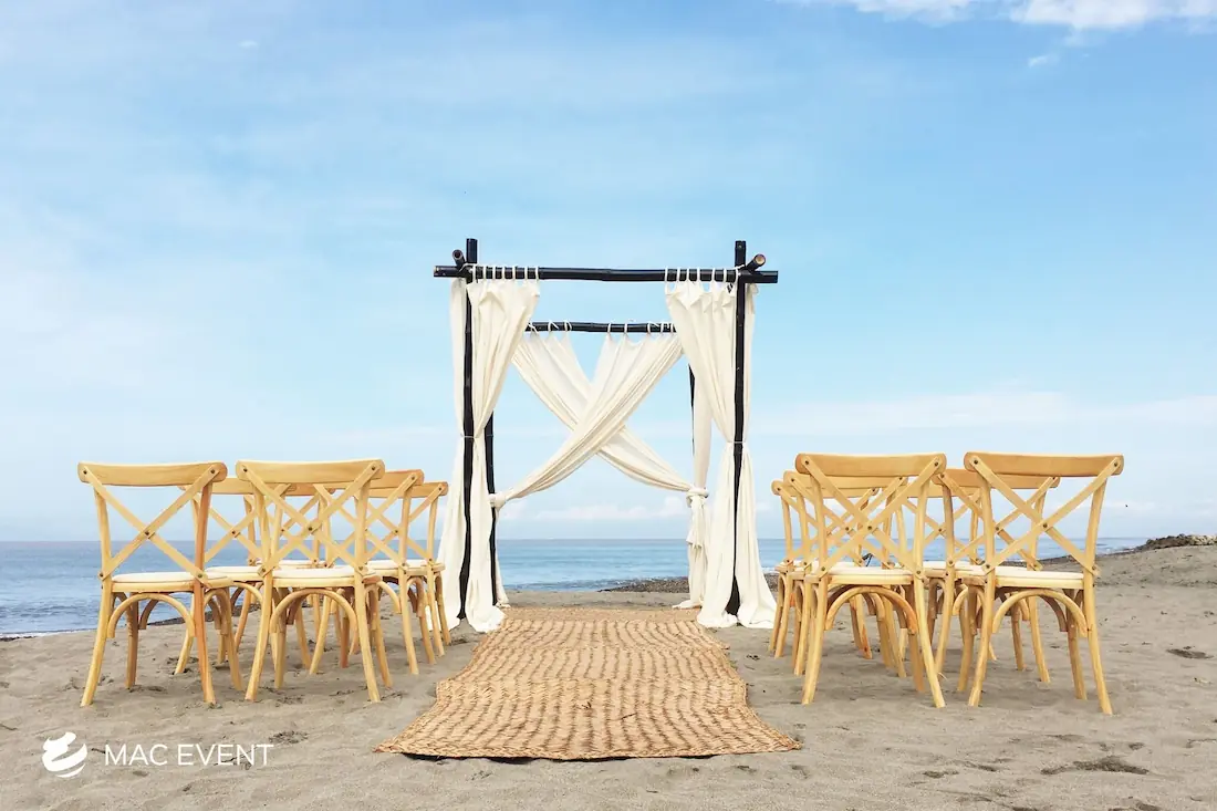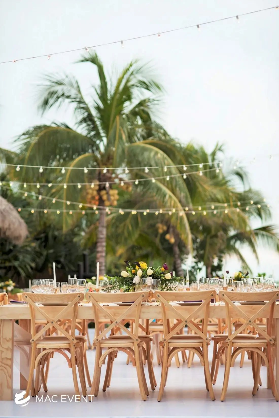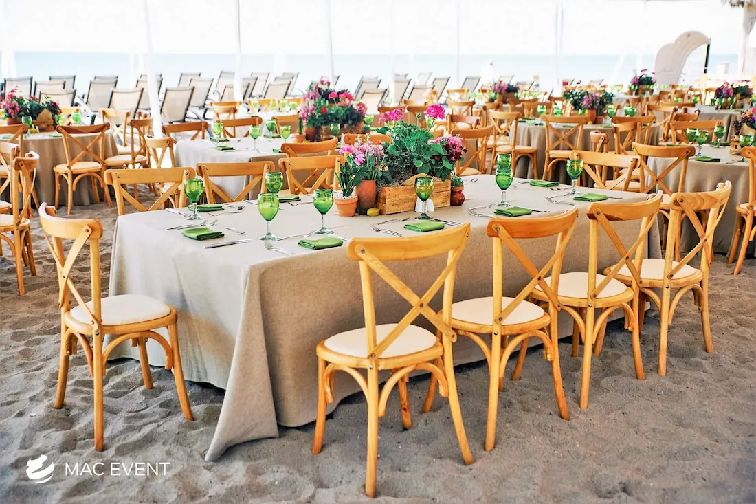 Renta de sillas cross back en Puerto Vallarta, Sayulita y Punta Mita para bodas y eventos. Estas sillas ofrecen un encanto rústico y elegante, ideales para bodas al aire libre. ¡Crea un ambiente acogedor y elegante!
